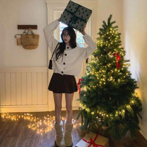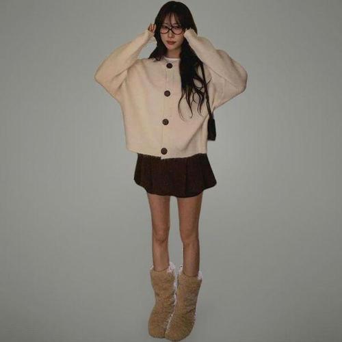 [신상오픈런]여성용 앙고라 니트 가디건 빅버튼 라운드넥 봄가을용