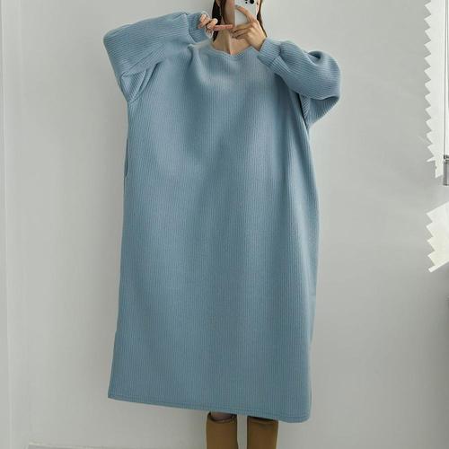 여자 보온 일상룩 박시핏 겨울홈웨어 롱원피스