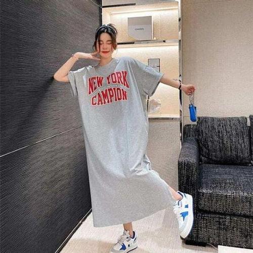 상상그이상 여성용 국내제작 간절기 베이스볼 원피스 빅사이즈 레터링 롱티셔츠 심플 포인트 사계절 면 데일리룩
