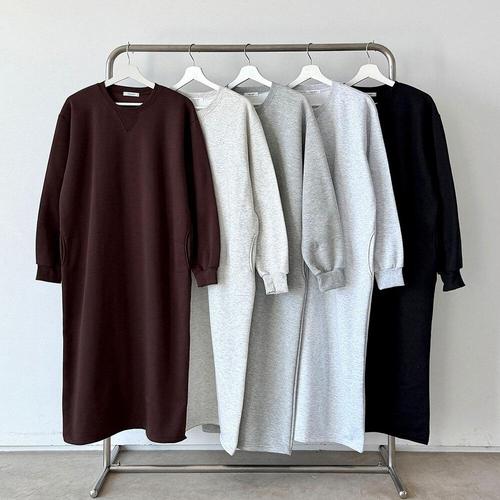 여성 기모 겨울 롱 원피스 맨투맨 후드 루즈핏 오버핏 빅사이즈 홈웨어 A라인 박시 면 라운드 플레어 니트