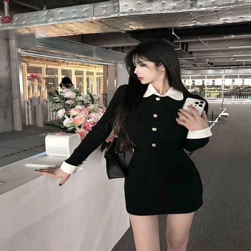 [셀럽하우스]여성 EYJI5799 화이트 카라 포인트 여친 패션 블랙 미니 원피스