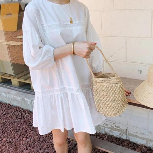 [다잇템]여자 미니멀리즘 레이스 퓨어 흰색 청초 원피스 (12266158A)