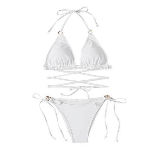 [셀러허브_여성트랜드패션]비치웨어 골드링 연결 흰색 비키니 휴가룩