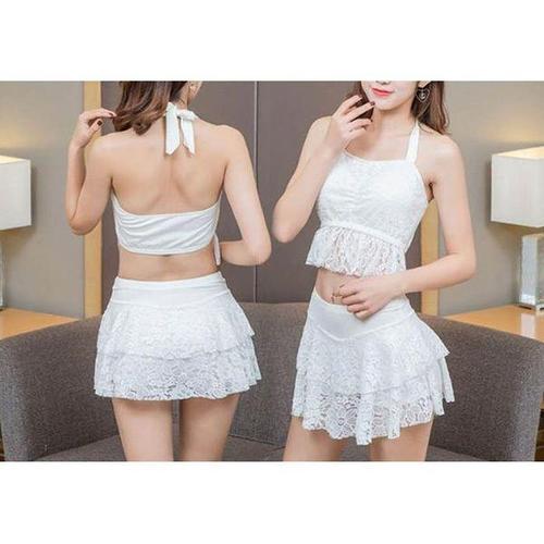[셀러허브_여성트랜드패션]비키니 화이트 캡내장 프릴 상의 투피스