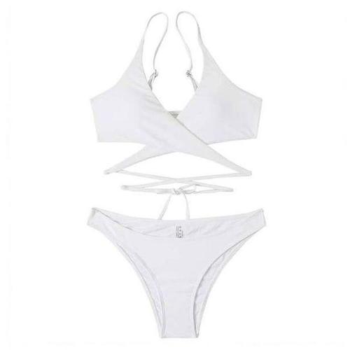 [셀러허브_여성트랜드패션]화이트 여름 썸머 크로스 비키니 수영복