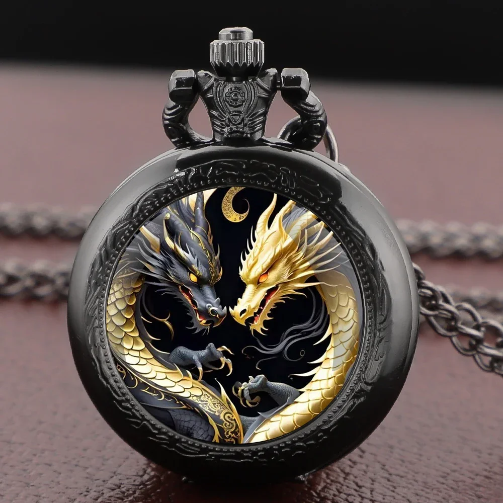 음양 디자인 용 유리 돔 빈티지 쿼츠 회중시계 남녀 펜던트 목걸이 체인 시계 시간 시계 쥬얼리 선물