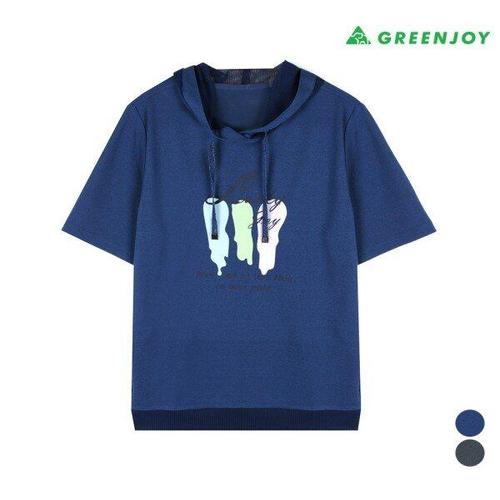 [그린조이]여성 반팔 후드 라운드 티셔츠