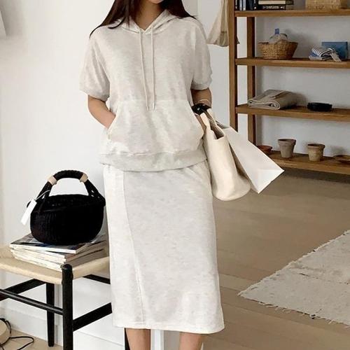 [신상오픈런]|KMD2437|반팔후드티 캥거루포켓 스웨트셔츠 일자치마 투피스_20407322_597559