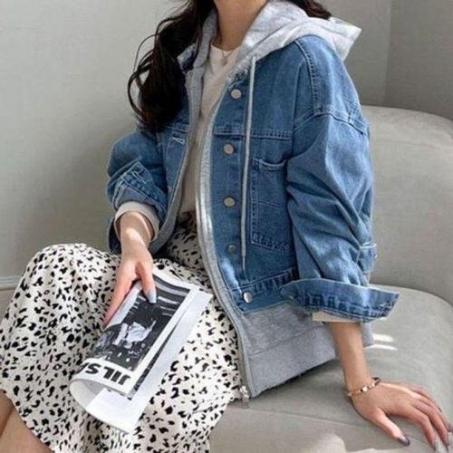 여성 후드 청자켓 루즈핏 데님 점퍼 후드집업 숏 코트 빅사이즈 봄가을