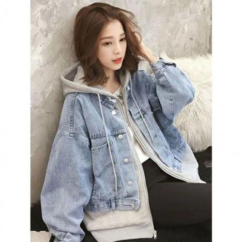 공항 패션 캐주얼 후드 탈부착 데님 청 자켓 오버 핏
