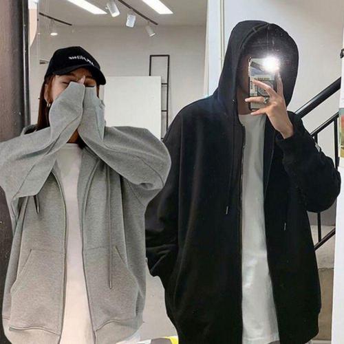 남녀공용 루즈 오버핏 베이직 후드집업 커플 아우터
