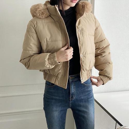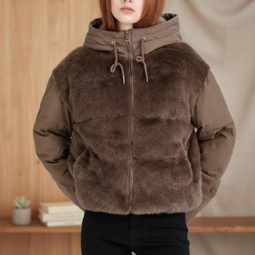 [셀러허브_여성트랜드패션]여성 겨울 데일리 따뜻한 퍼 후드 숏패딩 점퍼