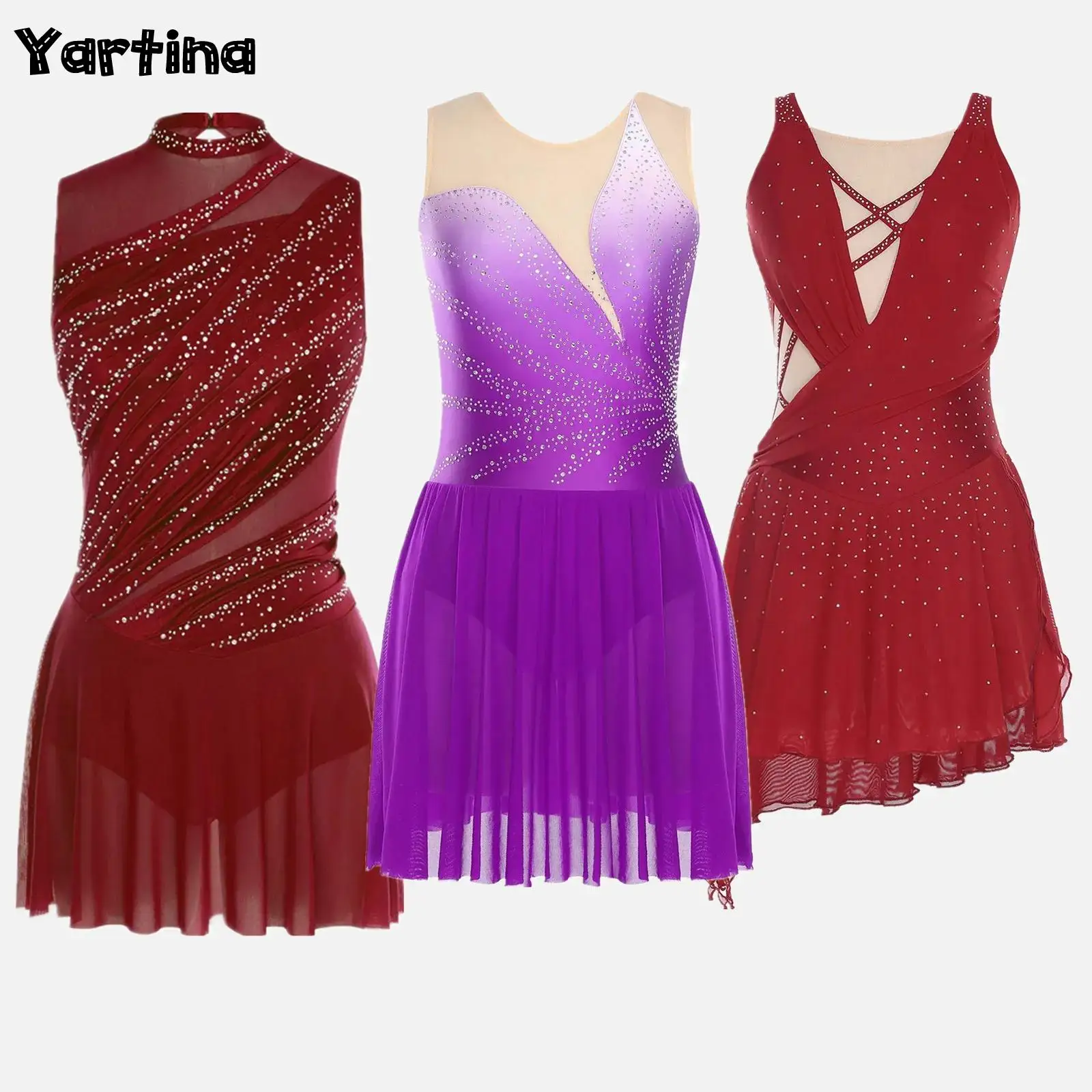 키즈 소녀 라인 석 예술적 스케이트 리듬 체조 발레 저지 서정적 라틴 현대 댄스 오버레이 레오타드 투투 드레스