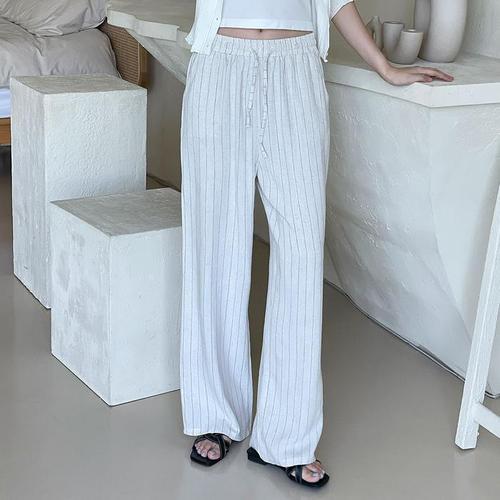 smile morli 시원한 스트라이프 와이드 바지 여성 팬츠