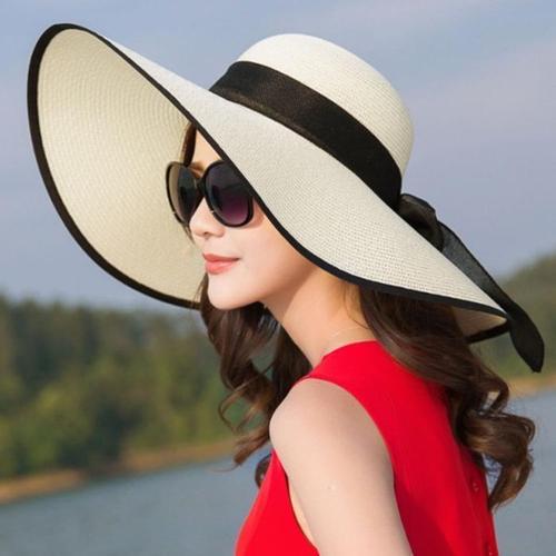 [다잇템]여자 웨이브챙 리본 포인트 SS 휴양지룩 모자 (19286278A)