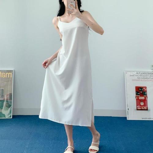 A라인 롱원피스 홈웨어 휴양지룩 슬릿 뷔스티에 멜빵 원피스 점프수트