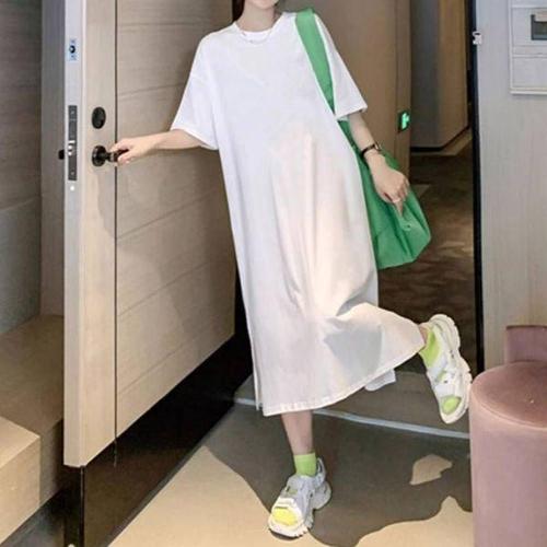 ORZQU 여름 원피스 중년 여성 빅 사이즈 루즈핏 반팔 바캉스 휴양지롱원피스 스커트 홈웨어