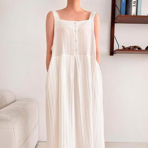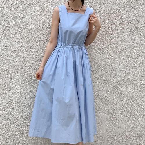 루어스룸 커넥트 민소매 리본 셔링 핀턱 휴양지룩 여름 루즈핏 롱원피스
