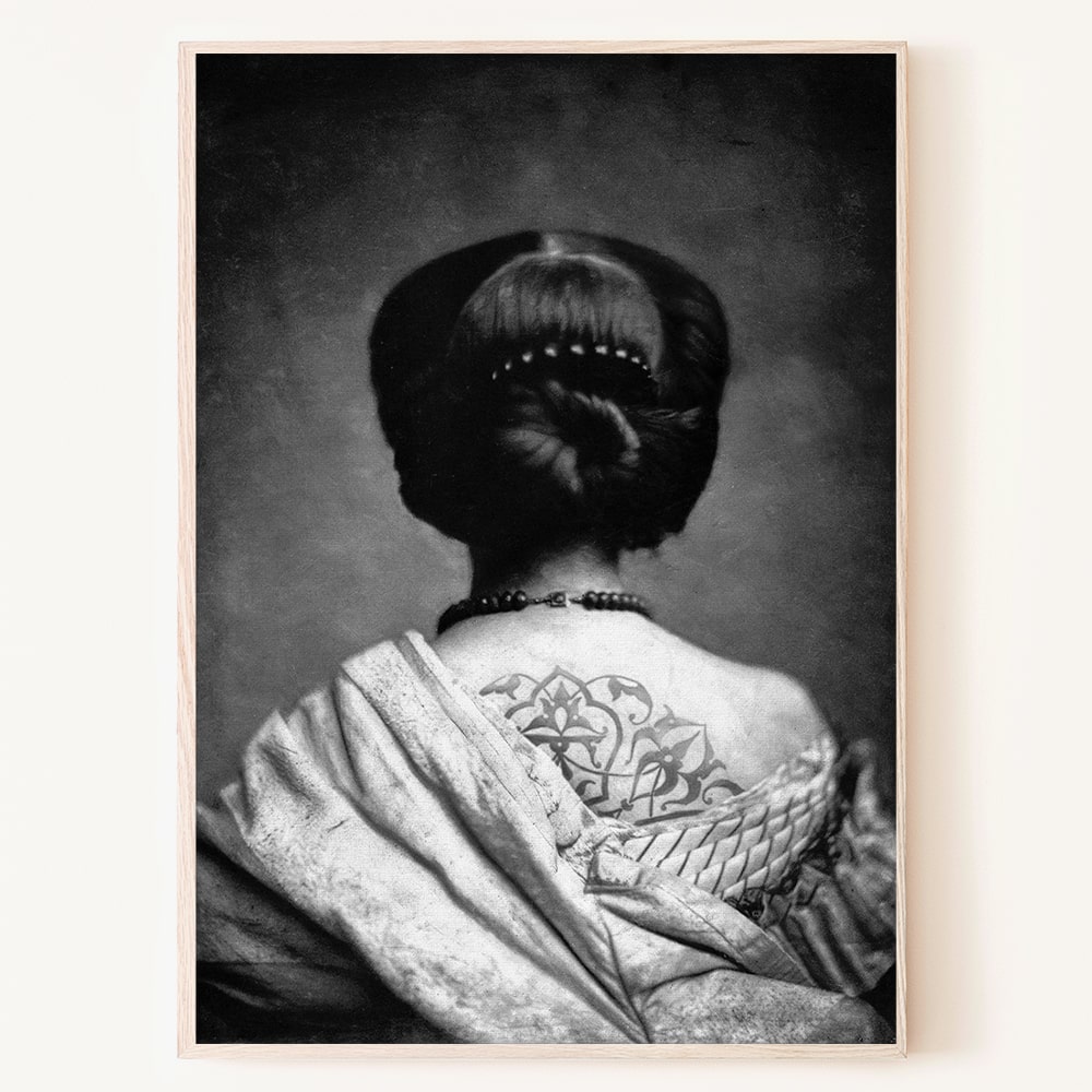 타투의 여인 뒷모습 흑백 사진 카페소품 거실액자 그림