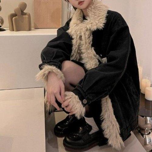 [페리엠]몽글몽글 솜사탕 퍼 흑청 데님 켈링자켓