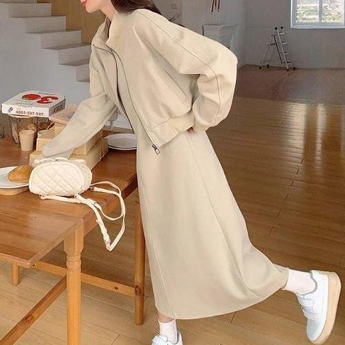 [옷자락] 여자 무지맨투맨 기모 빅사이즈 투피스 롱스커트 세트