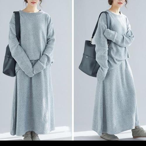 토시 니트웨어 패션 롱 드레스 의상 여성 루즈핏 커버업 V넥 골지 투피스 세트 파티룩 여성 니트 드레스 세트