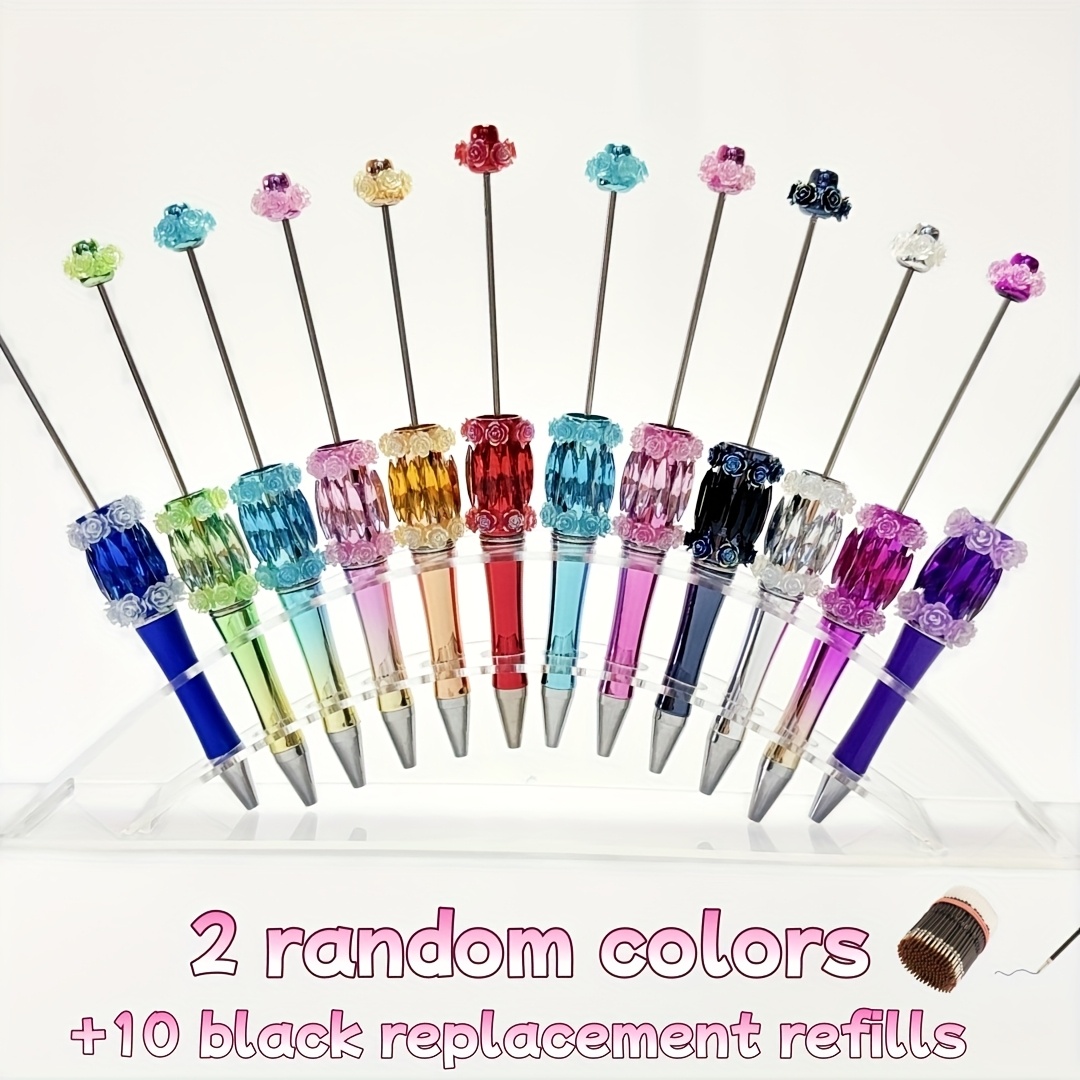 TEMU 25개 세트: 5개 DIY 펜 + 20개 검정색 잉크 리필, 반짝이는 별하늘 도금 구슬 볼펜, 포커스 비즈 DIY 펜 문구 창의적 공예 주얼리 만들기 키트
