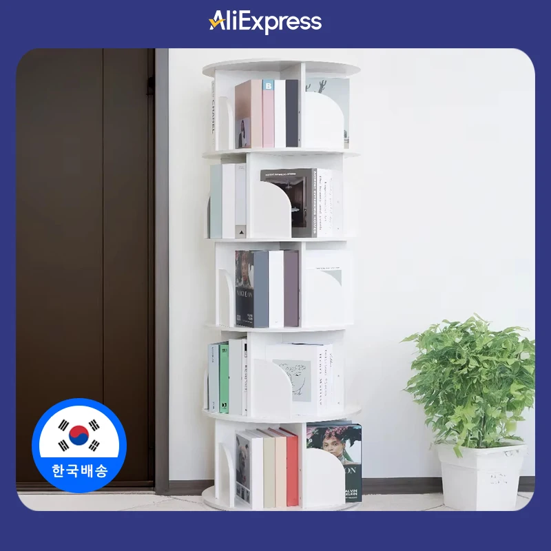이지라이프 조립식 360도 화이트 회전 원형 책장 화이트 4단