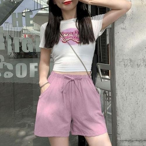 [엄지척]린넨 워싱 여성 3부 밴딩 반바지 봄 여름 캐주얼 팬츠_20138273_667501
