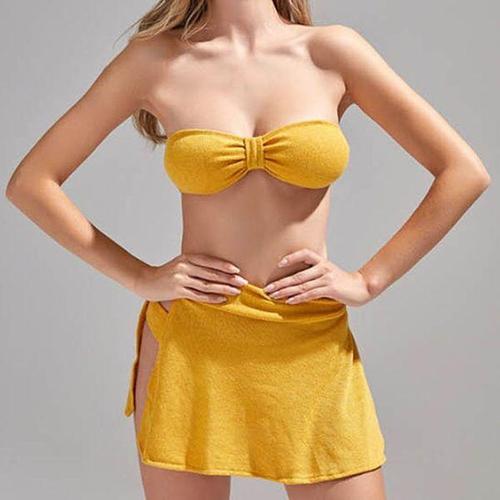 [에이치플러스몰]노란색 비키니 20대 30대 바캉스 수영복 3피스 코디