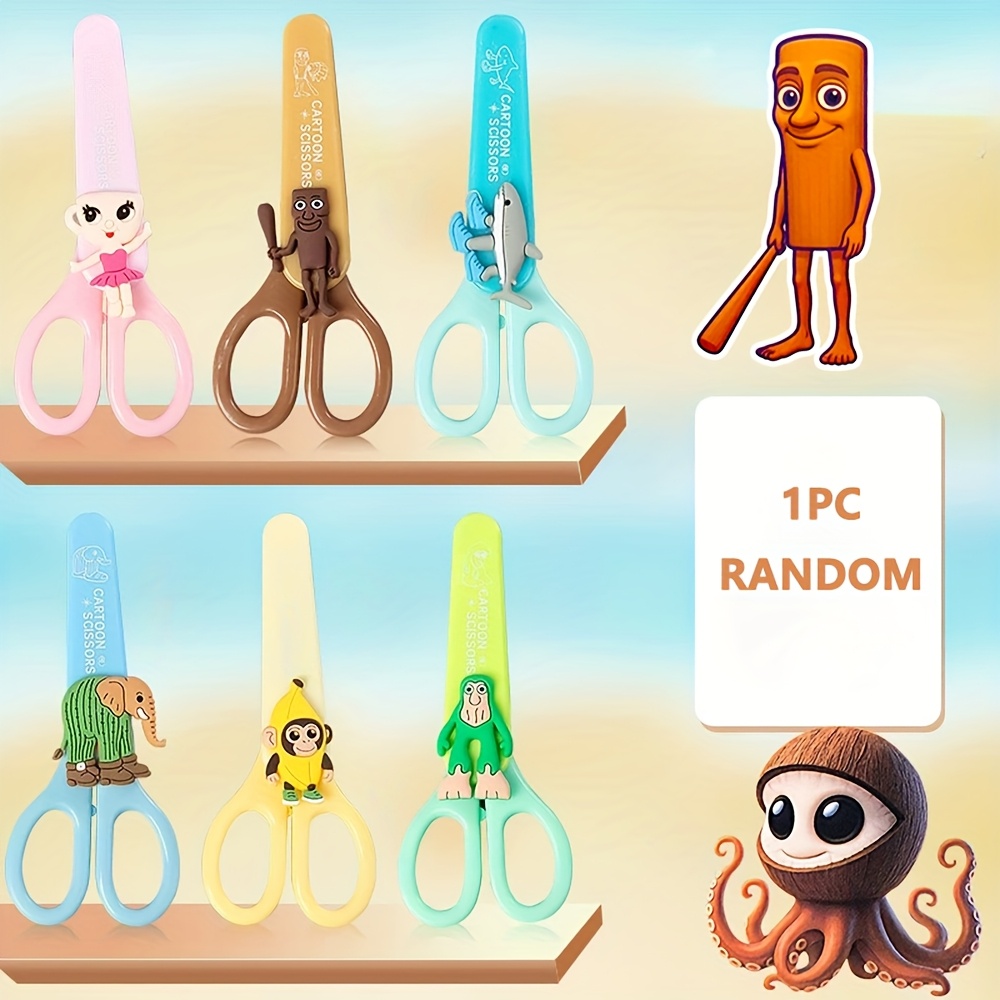 TEMU 이탈리아 브레인로트 테마 안전 가위 (보호 커버 포함) - 귀여운 캐릭터 디자인, 내구성 PVC, 7.5cm 날, 공예 및 사무용, 공예 용품, 장난기 넘치는 디자인, 튼튼한 구조