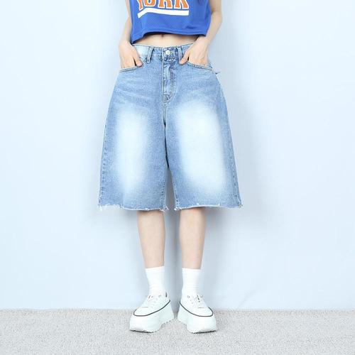 |KSP8928|여성 버뮤다 데님 여름 와이드핏 5부 워싱 청반바지