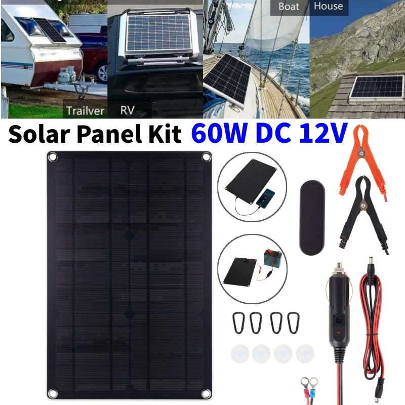 60W 휴대용 태양 전지 패널 키트 DC 12V 태양 광 컨트롤러 충전 플레이트 충전기 야외 캠핑 자동차에 대한 높은 출력 효율