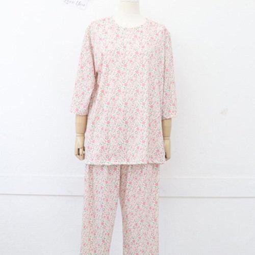[미라클세븐]여성용 시원한 꽃무늬 7부 소매 반팔티와 긴바지 홈웨어 세트