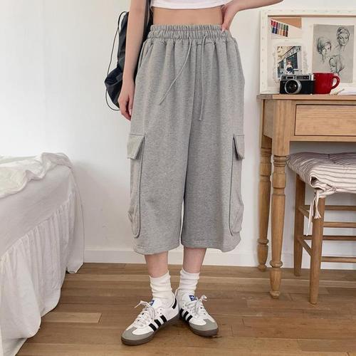 탄탄 와이드 핀턱 카펜터 7부 트레이닝 팬츠 / 남녀공용 원턱 벌룬 편한 회색 버뮤다 추리닝 반바지