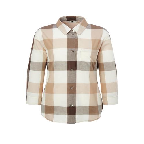 베이지 체크 면 7부소매셔츠 (DLSH5BE35I2)