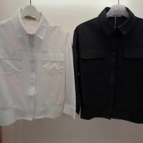 [다잇템]여자 바스락 앞뒤버튼 칠부 출근룩 언발 셔츠 (14942322A)