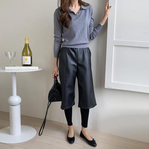 [신상오픈런]|KHP7185|라이시 가죽 레깅스 깔끔 와이드팬츠 밴딩 윈터 7부 여성_18163661_597559