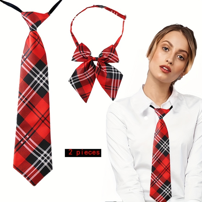 TEMU 2개 33cm13인치 영국 컬러 직조 고품질 매트 영국 체크무늬 넥타이 지퍼 없는 조절 가능한 보우 타이 컬리지 스타일 셔츠 JK 넥타이 여성 일상용