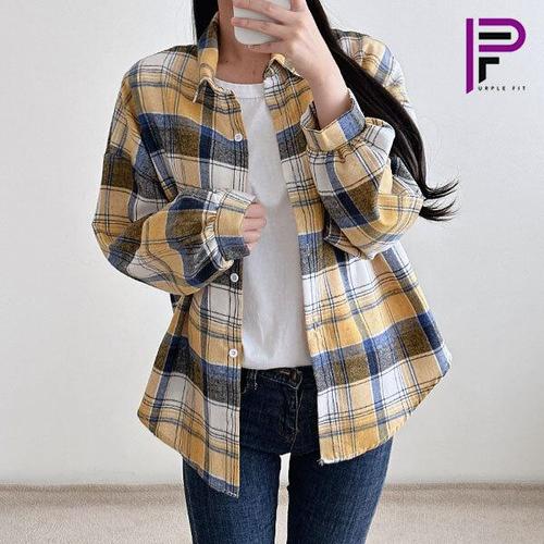 [퍼플핏]벌룬 루즈핏 긴팔 체크셔츠_P48LS004
