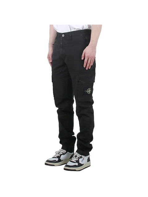 스톤아일랜드 남성 와펜 레귤러 테이퍼드 핏 카고 코튼 팬츠 블랙 3100033 S00L1 V0129
