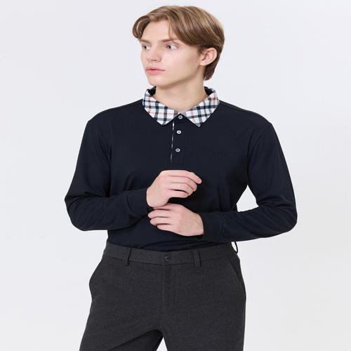 [스테디셀러]클래식 카라 체크 긴팔폴로티셔츠 (BLACK) (WGTS4D750BK)