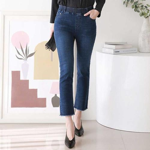 [JHL6S09R_51IB]여자 8부 청바지 밴딩 데님 팬츠 데이트룩