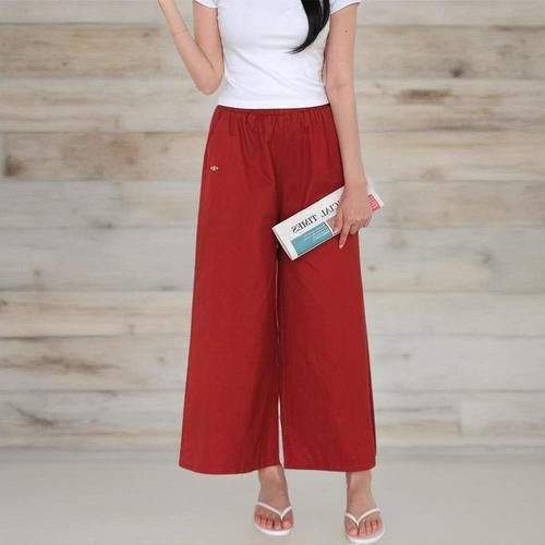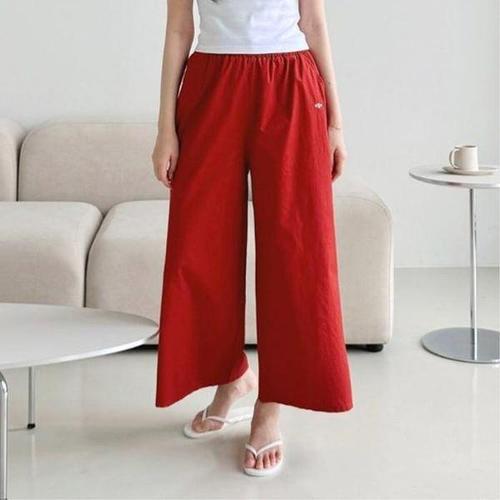 |CCP8D3E|여성 심플 코튼100 자수 밴딩 9부 와이드 팬츠