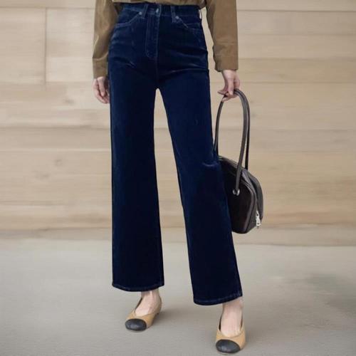 [신상오픈런]여자 심플 코튼 스판 벨벳 9부 데님 청바지