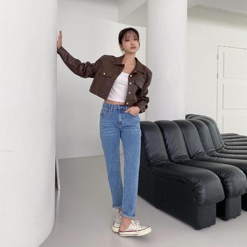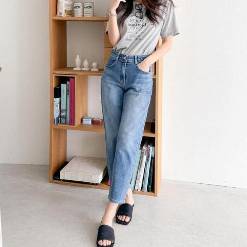 [다잇템]여자 H라인 빈티지 밑단 9부 백밴딩 데님팬츠 (12811110A)