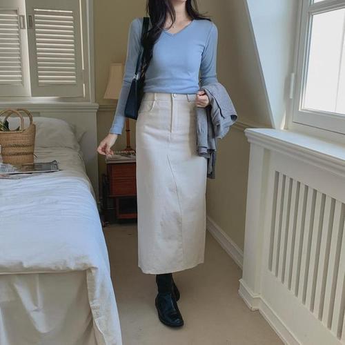 캐주얼 데님스커트 여성 청치마 롱 A라인 트임 스커트