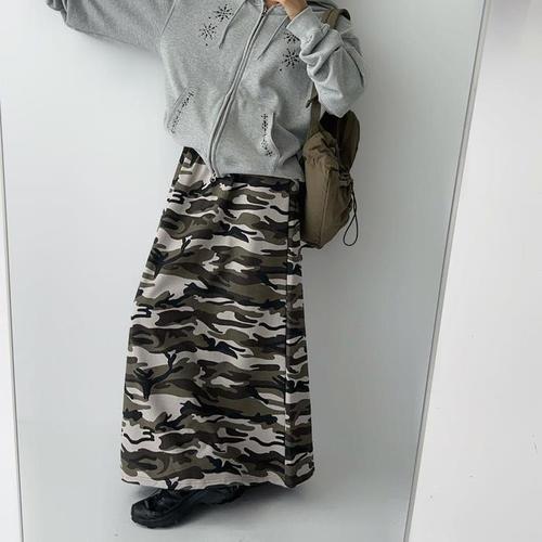 [다잇템]여자 그런지 밀리 에이라인 카모 슬릿 롱스커트 (41253215A)