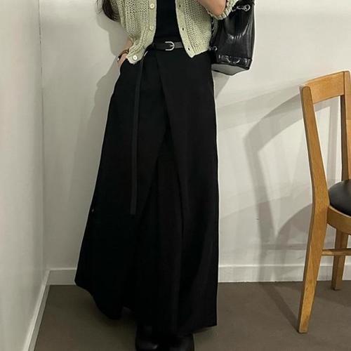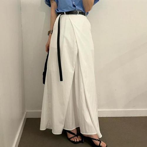 [다잇템]여자 사선 백밴딩 오버랩 에이라인 롱 스커트 (40957822A)