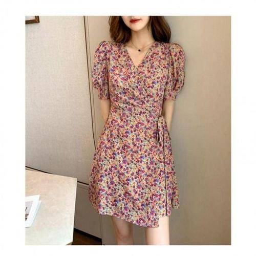 여성 봄 미니 꽃무늬 랩 원피스 여성봄 A라인 WFLMT5J